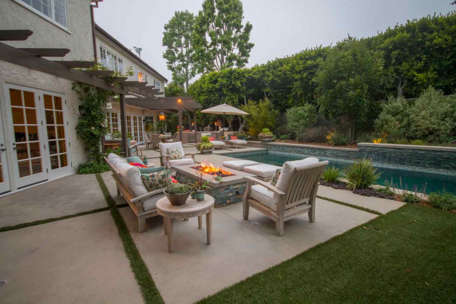 Pools, kitchens, pergolas, lighting, and seating are designed as one cohesive space. Together, they create a complete outdoor environment.